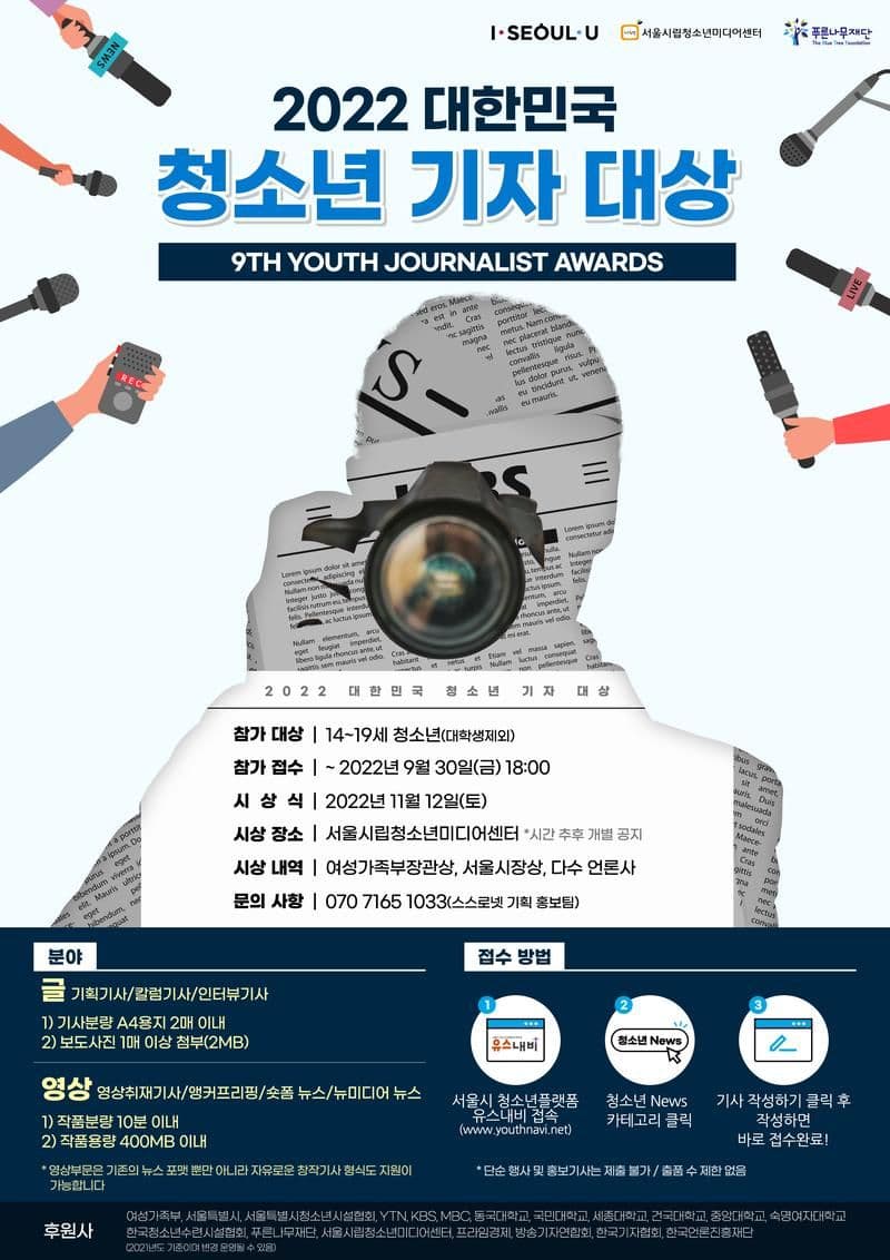 2022 대한민국청소년기자대상 기사 공모전!!!