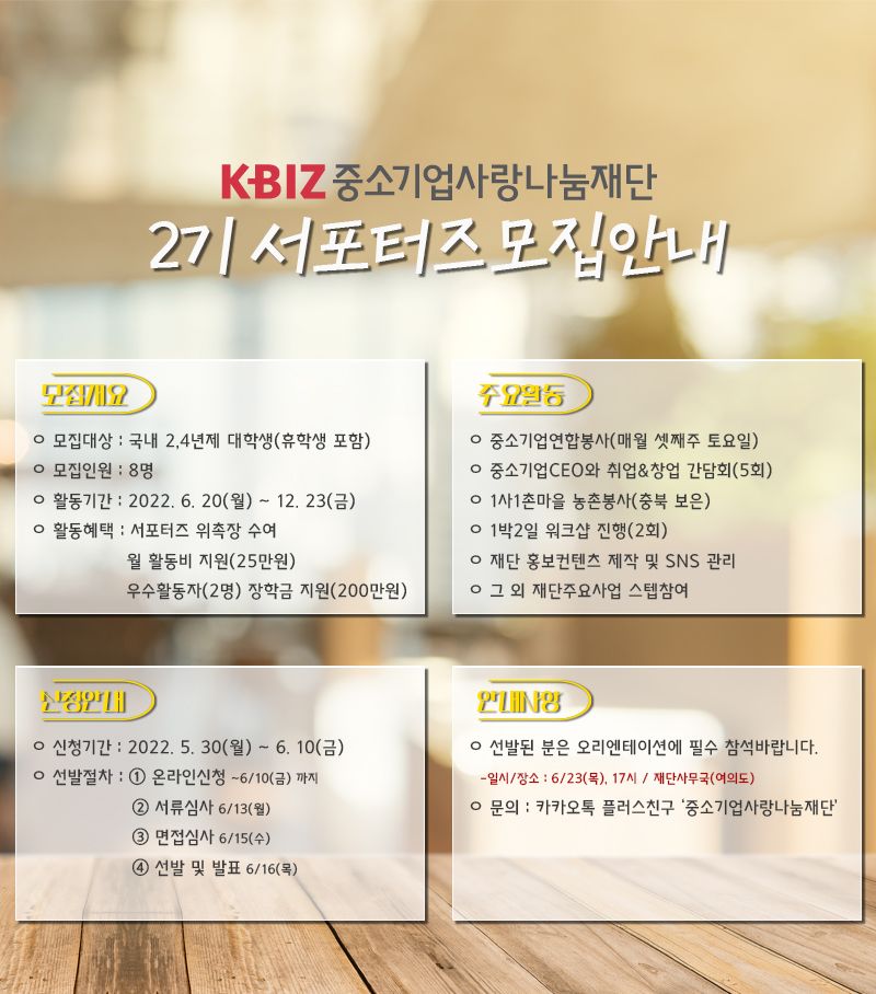 중소기업사랑나눔재단 대학생 서포터즈 모집
