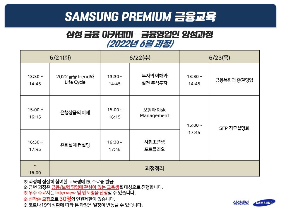 'SAMSUNG 대외활동' 교육기간 3일! 금융교육 프로그램 (6월 21일~ 6월 23일)