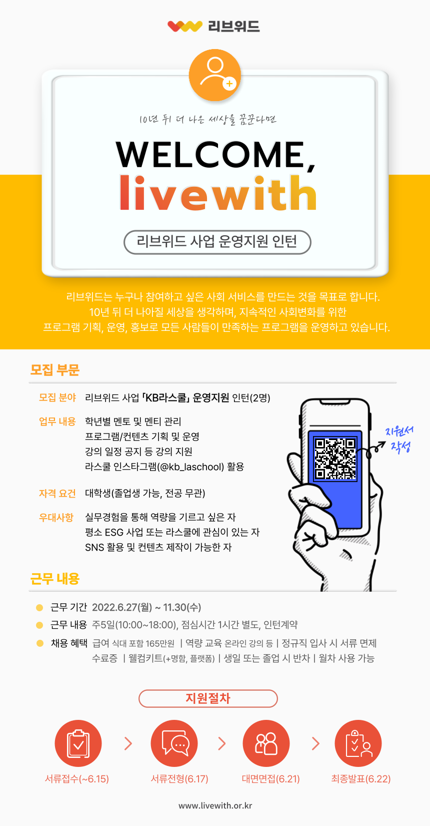 [리브위드] 사업 운영지원 인턴 채용(~6/15)