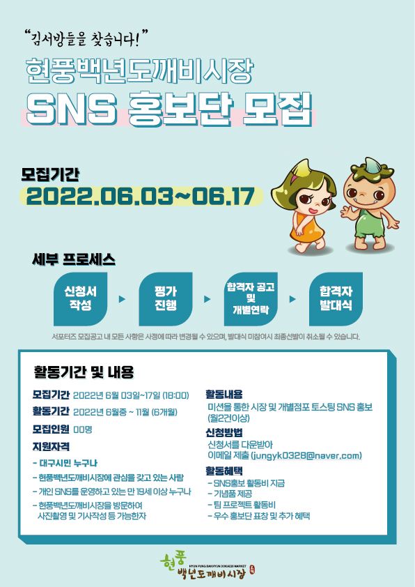 2022년 현풍백년도깨비시장 SNS 홍보단을 추가모집합니다 (부제:김서방을 찾습니다)