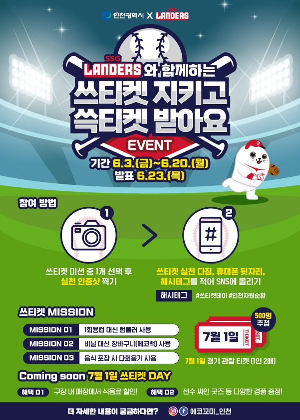 #인천광역시 #SSG랜더스 #쓰티켓 #쓱티켓 #쓰티켓데이 #인천자원순환 #자원순환