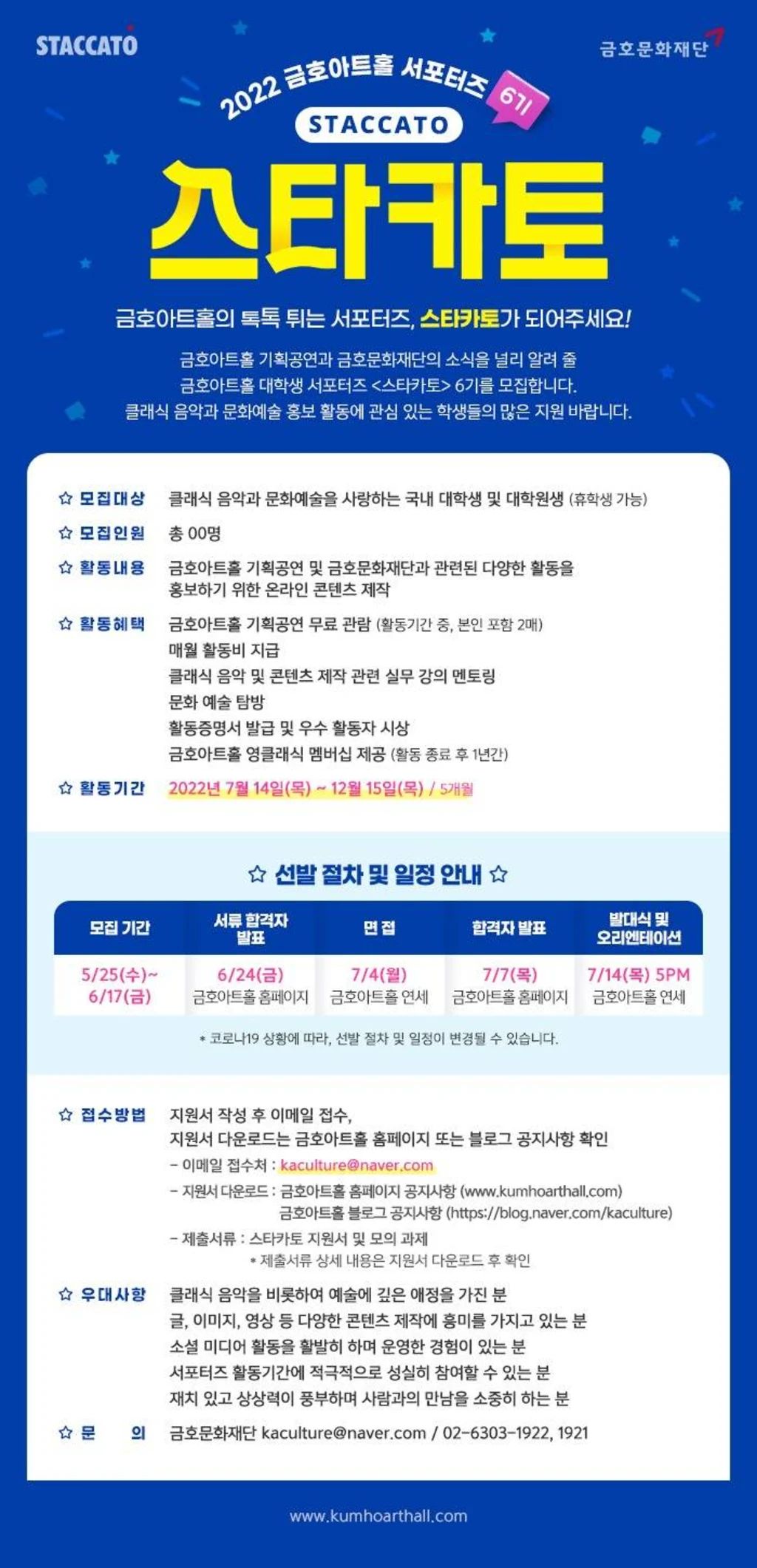 금호아트홀의 톡톡 튀는 서포터즈, 스타카토가 되어주세요!