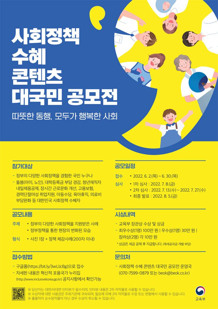 - 2022년 사회정책 홍보 콘텐츠 공모전 운영국(070-7599-0879 또는 beok@beok.co.kr)