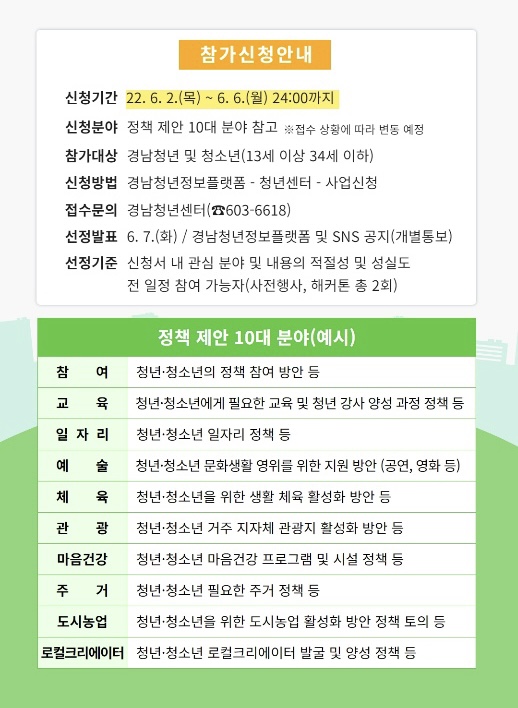 ✔️ 경남에 거주 중인 만 13세 청소년~34세 청년 ❗️