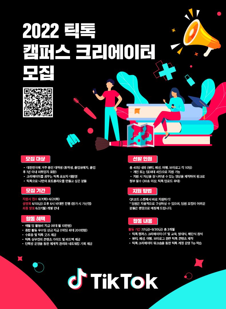 글로벌 숏폼 모바일 비디오 플랫폼 틱톡(TikTok)에서 캠퍼스 크리에이터를 모집합니다!