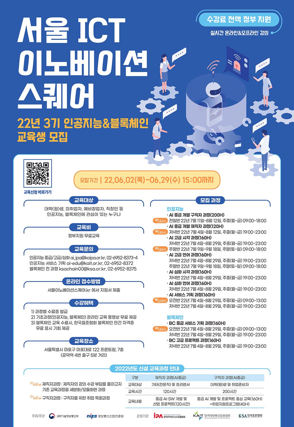 서울ICT이노베이션스퀘어에서 2022년 3기 교육생을 모집합니다.
