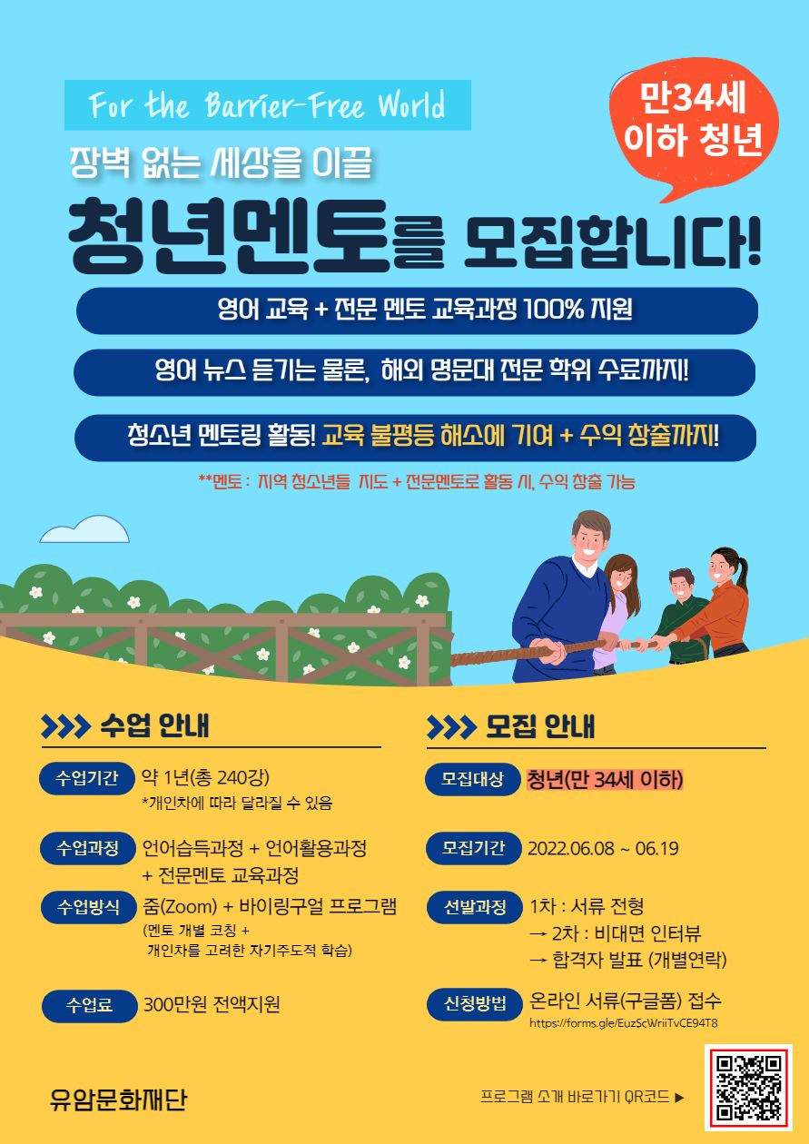 2022년 유암문화재단 청년(일반인 만 34세 이하) 대상 청년멘토 모집 안내
