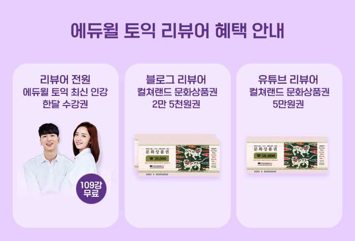 - 리뷰어 전원 : 에듀윌 토익 최신 인강 109강 한달 수강권