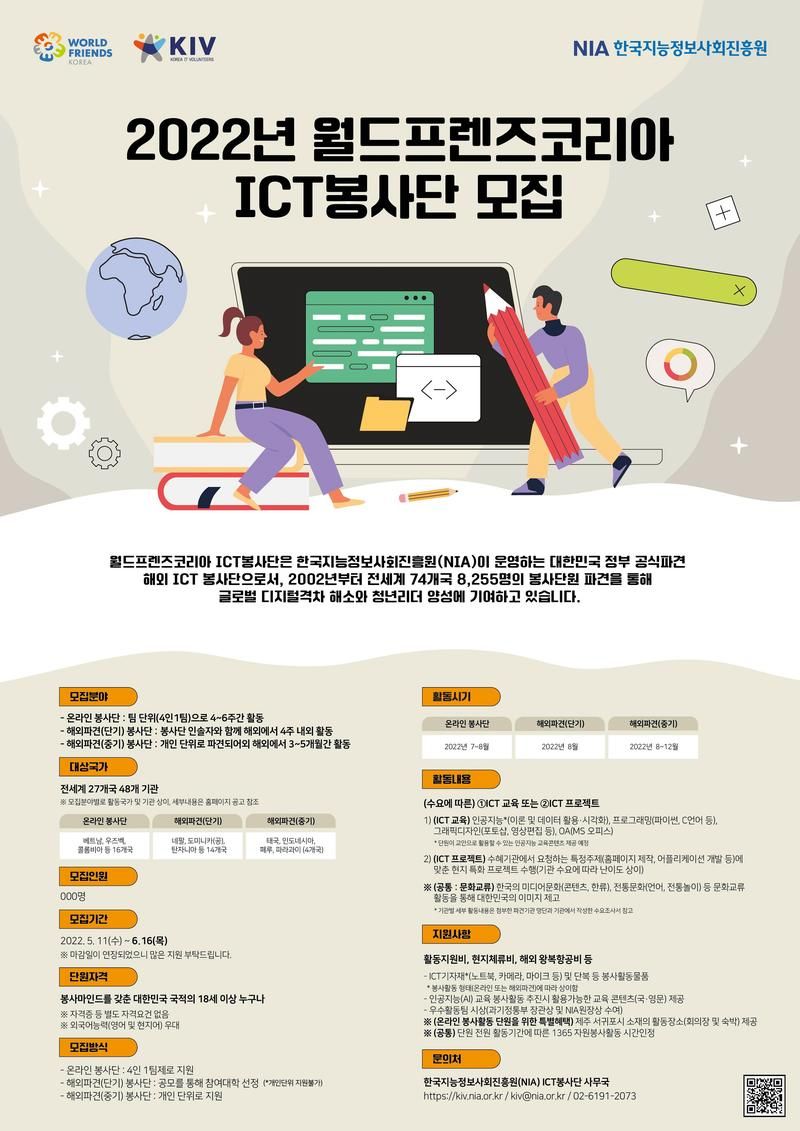 □ 문의처 : 한국지능정보사회진흥원(NIA) ICT봉사단 사무국