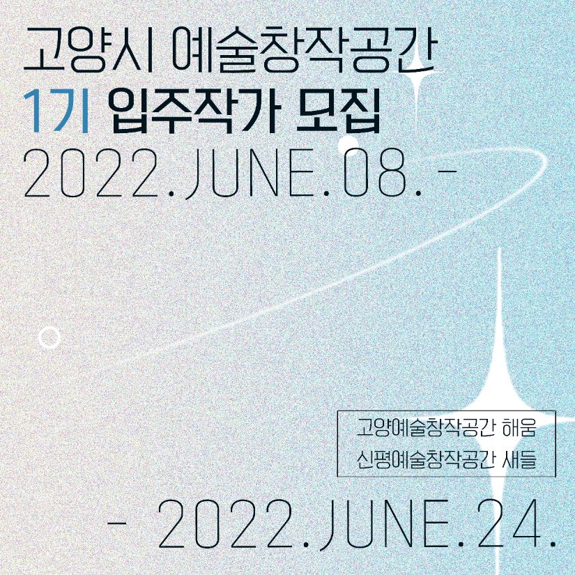 고양시에서 운영하는 고양예술창작공간(해움)·신평예술창작공간(새들)은 시각예술인의 창작 활동을 위한 창작공간으로서 지역의 시각예술 진흥 활성화에 기여하고자 합니다. 이를 위해 고양시에서 미술로 소통을 일구어 나갈 제1기 입주작가를 모집하오니, 많은 관심과 참여 바랍니다.