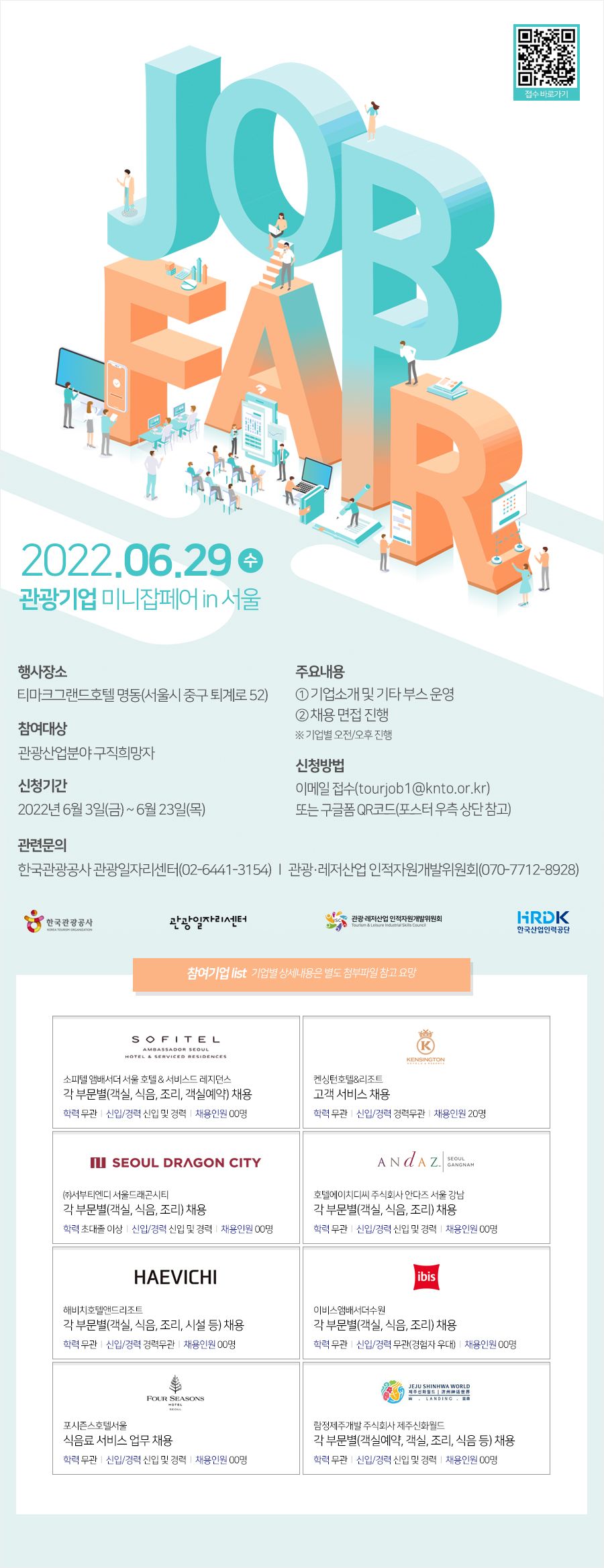 ■ 채용기업(중복지원 가능) : 소피텔, 켄싱턴, 서울드래곤시티, 안다즈서울강남, 해비치, 이비스앰배서더수원, 포시즌스호텔서울, 제주신화월드