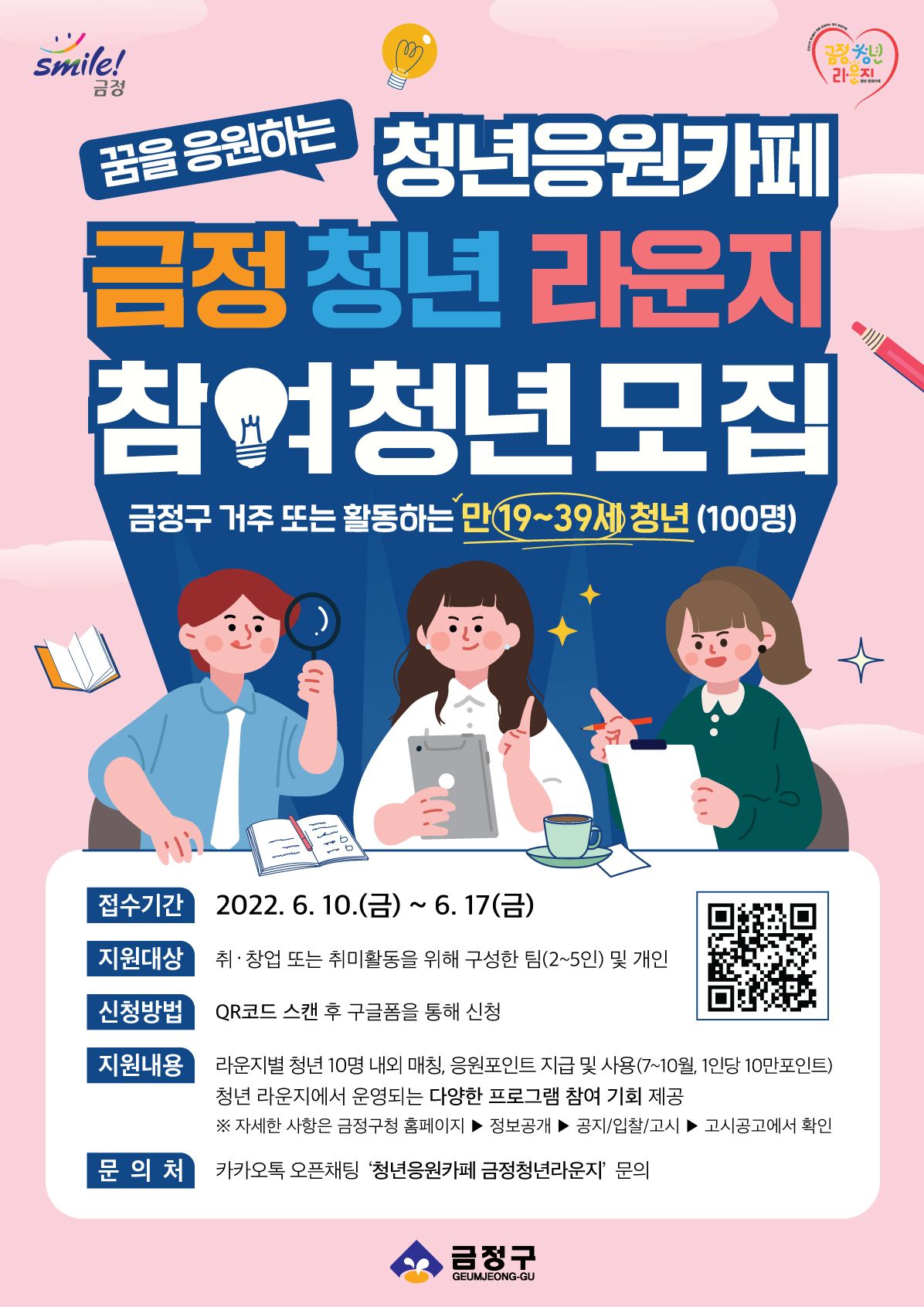 아. 문 의 처: 카카오톡 오픈채팅 ▻ 카카오톡에서 "청년응원카페 금정청년라운지"검색