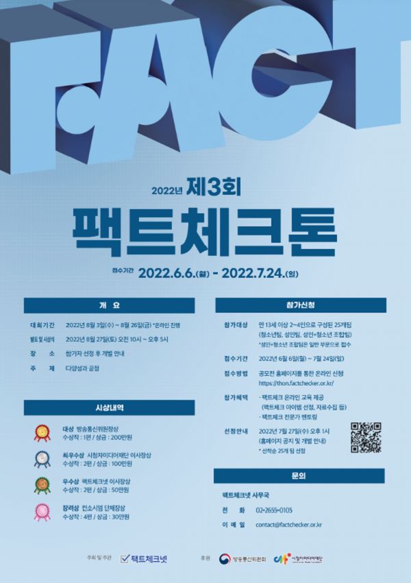 - 우수상(2편) : 50만원, 팩트체크넷 이사장상