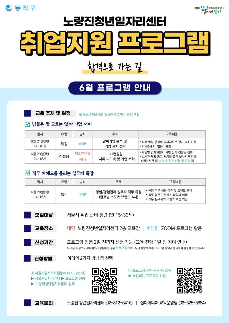 동작구 노량진 청년일자리센터 / 취업 지원 프로그램(6월) - 합격으로 가는 길