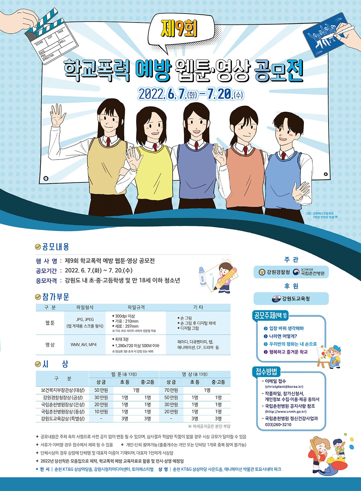 ■ 문의 : 국립춘천병원 학교폭력예방 웹툰·영상 공모전 담당자