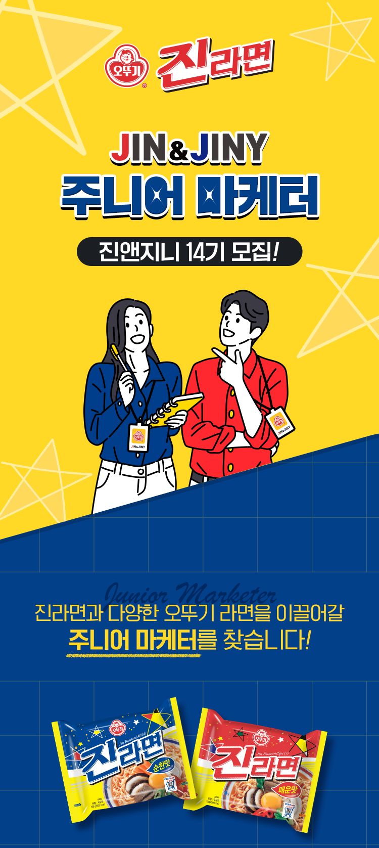 "진라면과 다양한 오뚜기 라면을 이끌어갈 주니어 마케터를 찾습니다!"