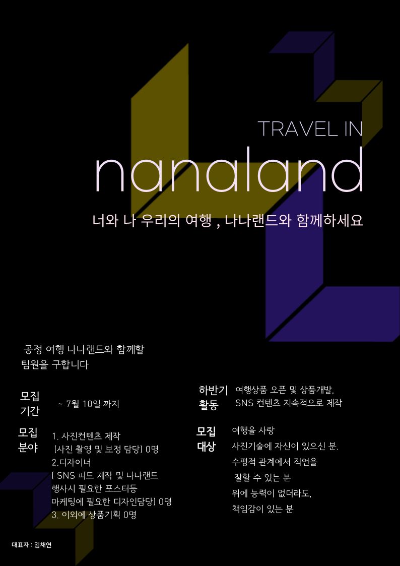 디자이너 ( SNS 피드 제작 및 나나랜드 행사시 필요한 포스터 등 마케팅에 필요한 디자인담당) 0명 ,