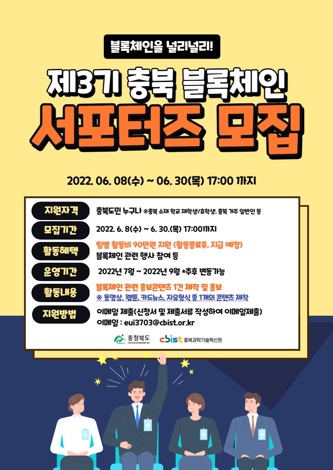 - 충북블록체인진흥센터 담당자 043-210-0844 / eui3703@cbist.or.kr
