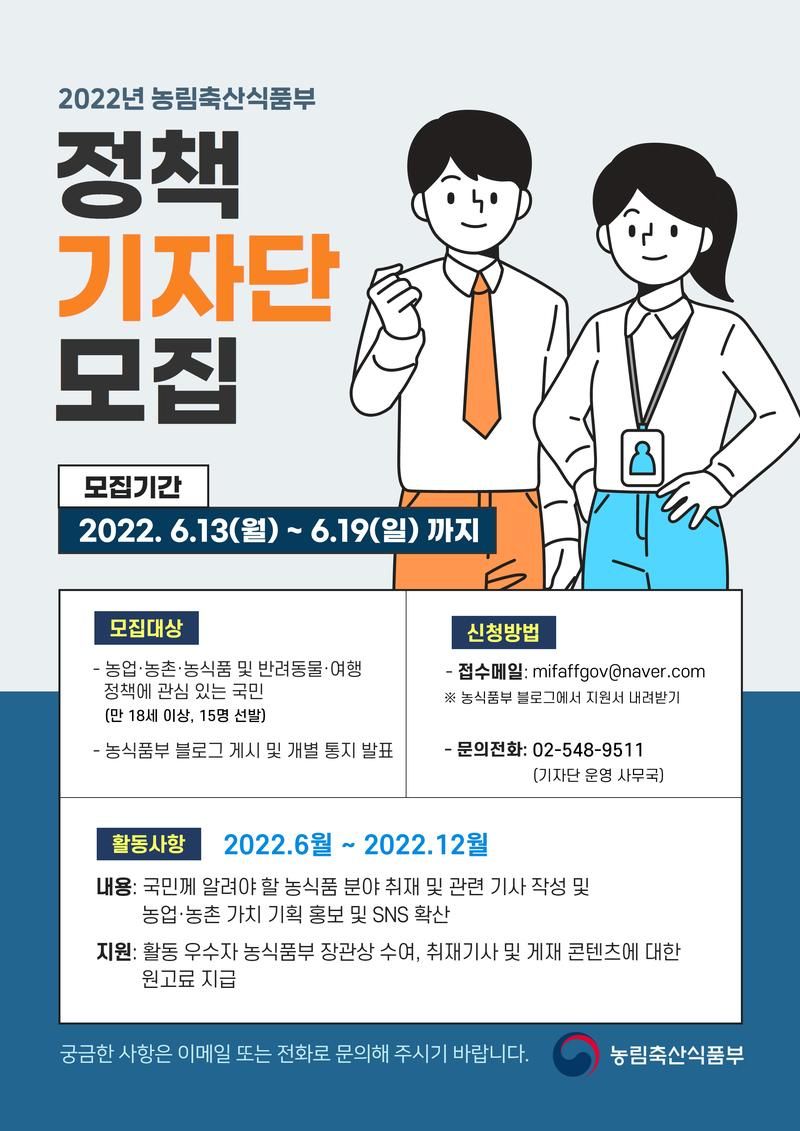 2022 농림축산식품부에서 정책기자단을 모집합니다.