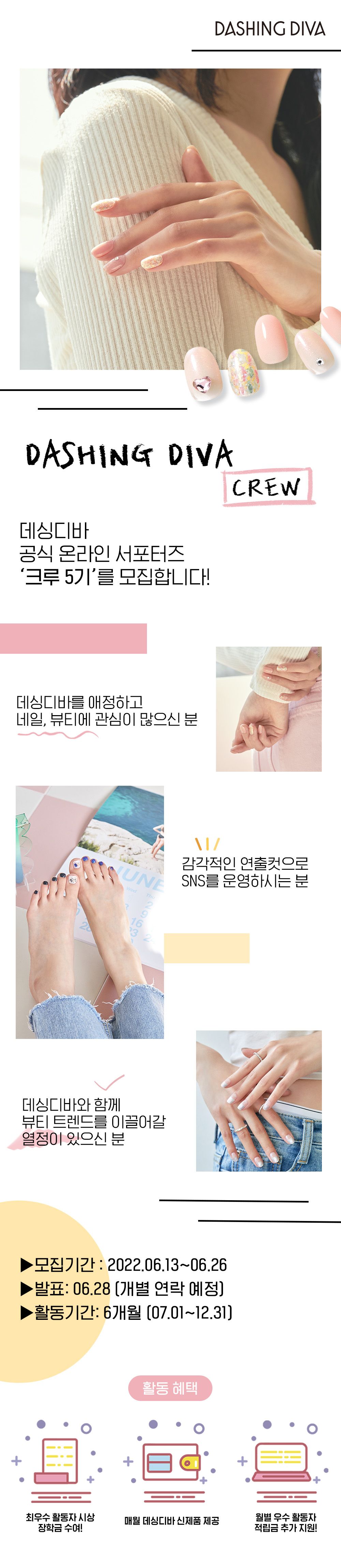 글로벌 셀프 네일 브랜드 DASHING DIVA에서 함께 뷰티 트렌드를 이끌어 갈 디지털 인플루언서 '데싱디바 크루 5기'를 모집합니다!