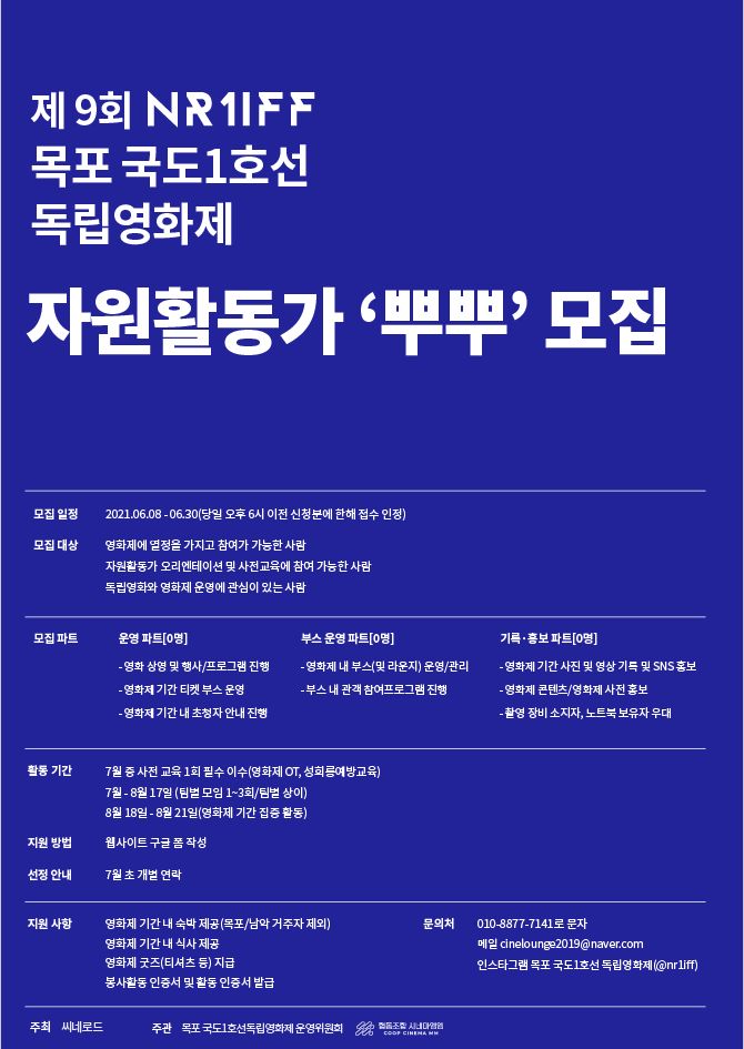 제9회 목포 국도1호선 독립영화제 자원활동가 모집을 시작합니다!