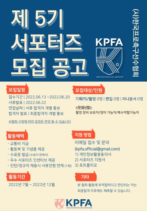 (사)한국프로축구선수협회 제 5기 서포터즈
