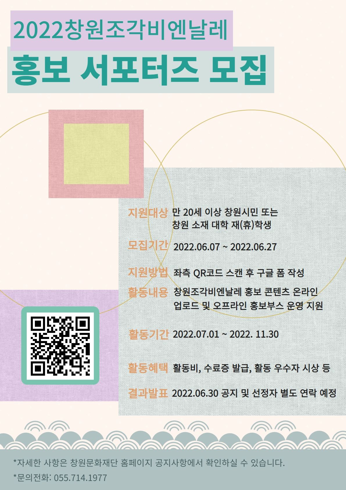 창원문화재단에서 2022창원조각비엔날레(전시 기간: 22.10.7~22.11.20) 홍보 서포터즈를 모집합니다.