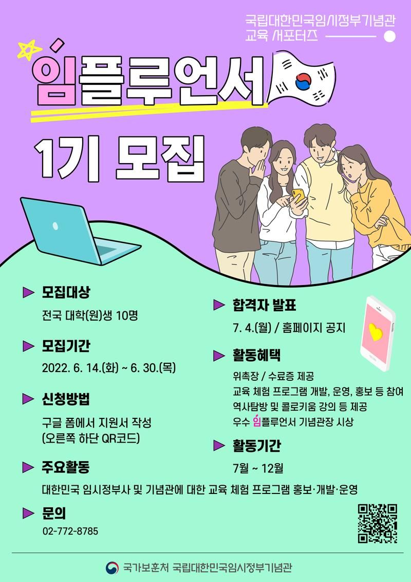 국립대한민국임시정부기념관에서 교육 서포터즈 '임플루언서' 1기를 모집합니다.