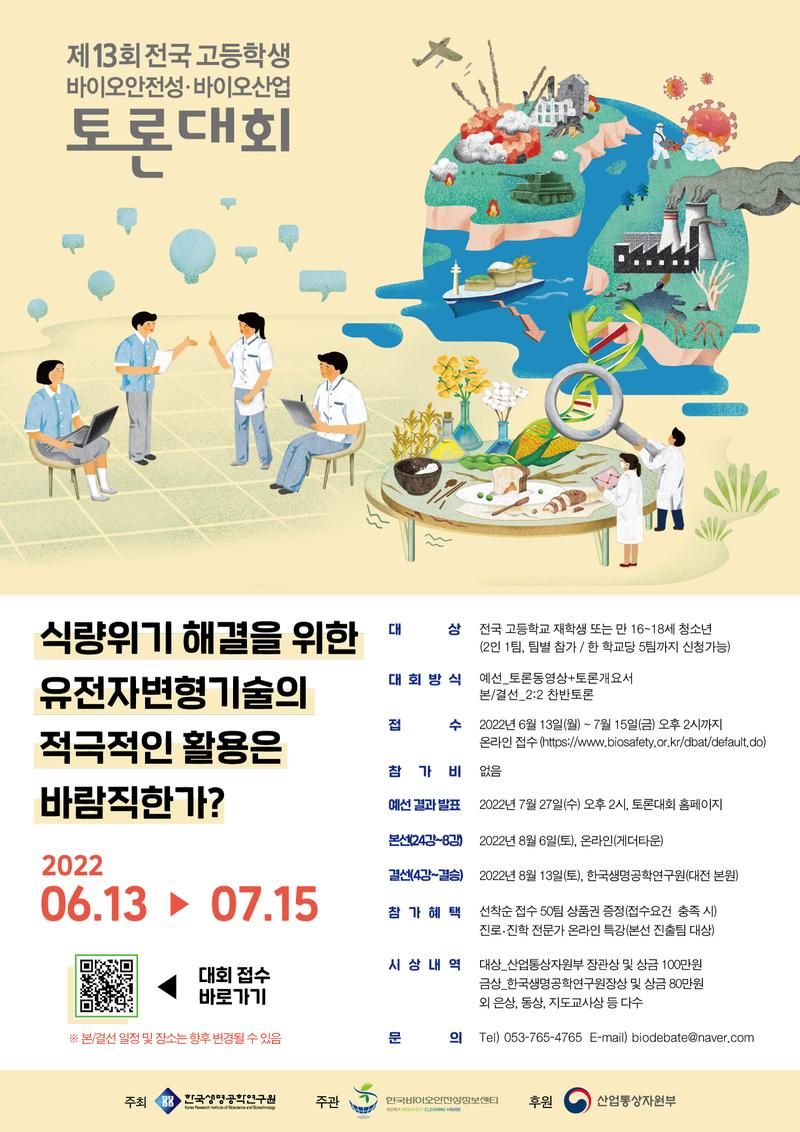 접수 : 2022년 6월 13일(월) ~ 7월 15일(금) 오후 2시까지 온라인접수 (https://www.biosafety.or.kr/dbat/default.do)