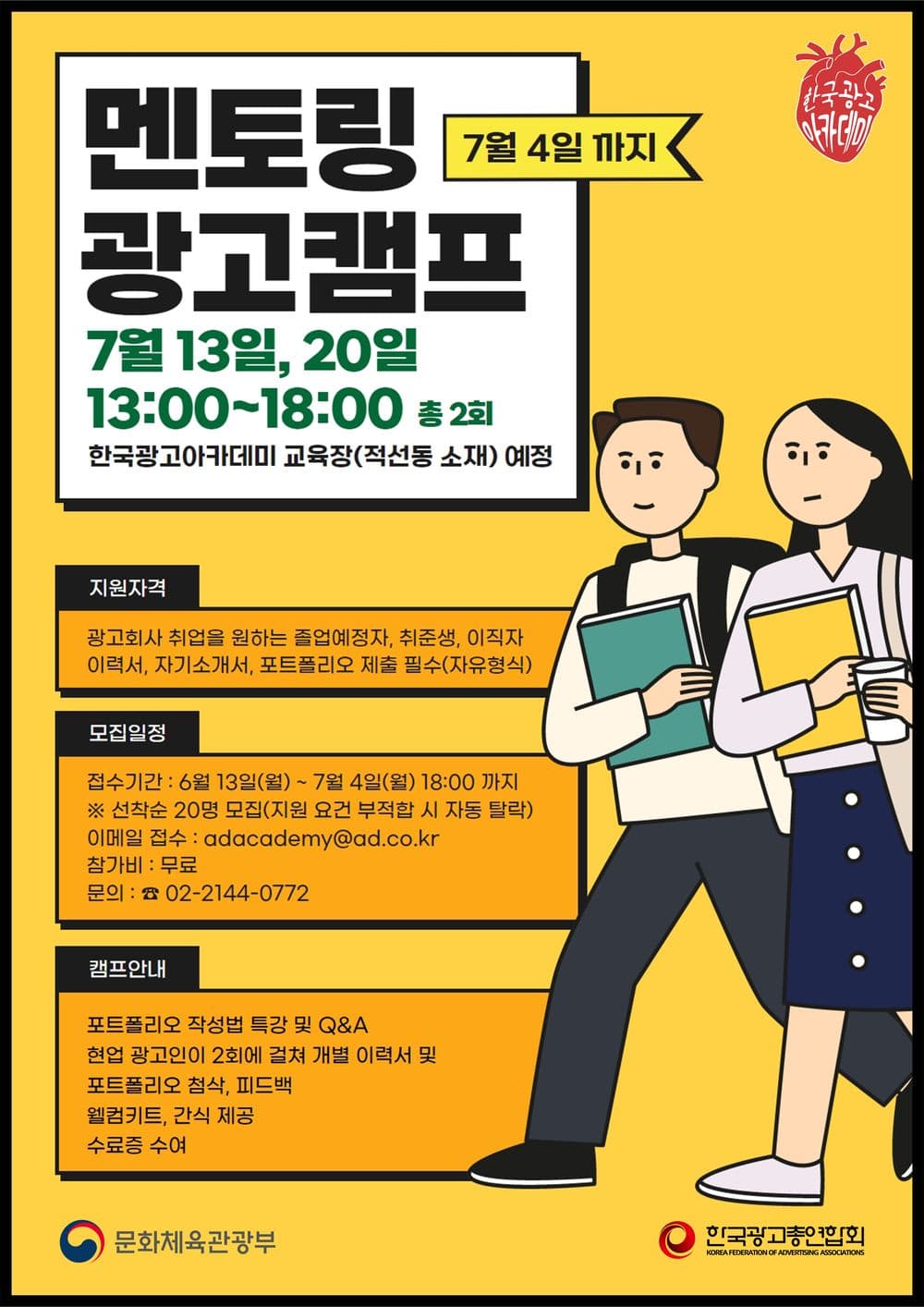 광고회사 취업을 위한 ‘멘토링 광고캠프’가 7월에 열릴 예정입니다.