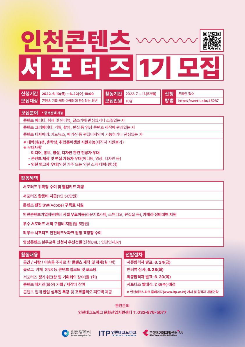 인천 콘텐츠 서포터즈 1기 모집 공고