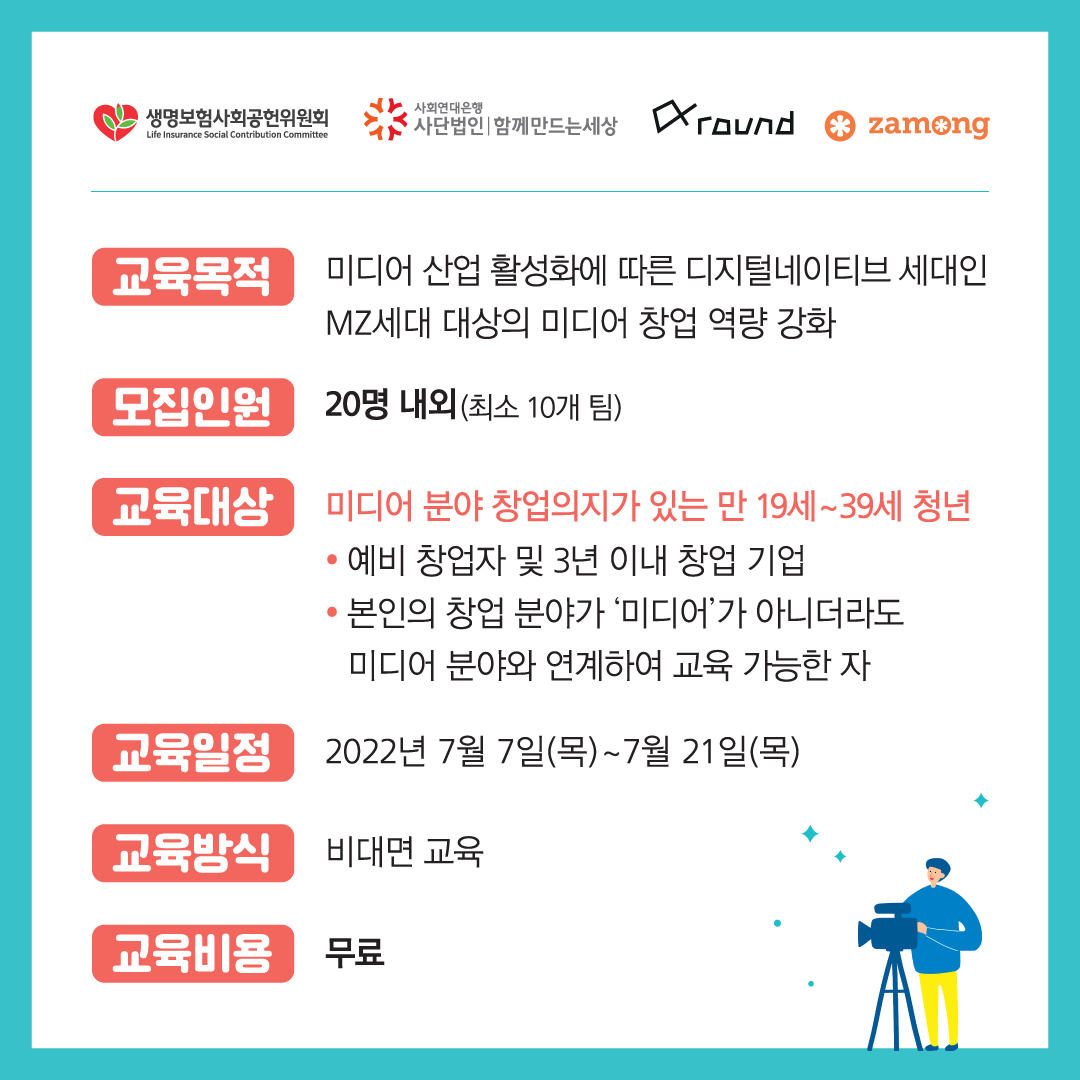 ㅇ모집대상 : 미디어분야 창업의지가 있는 만 19세~39세 청년(상세페이지 참고)