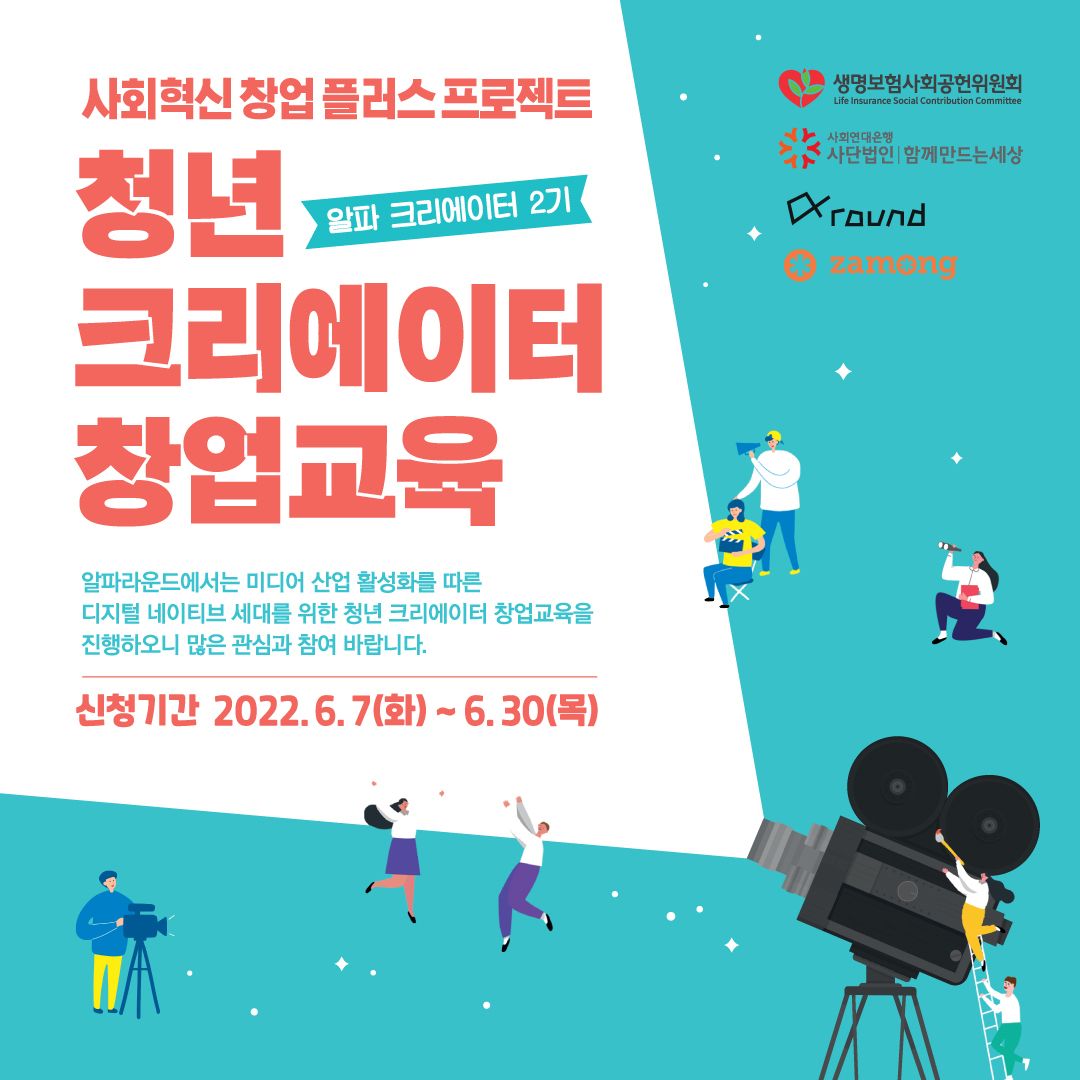 알파라운드에서는 미디어 산업 활성화에 따른 디지털 네이티브 세대를 위한 청년크리에이터 창업교육을 진행하오니 많은 관심과 참여 바랍니다.