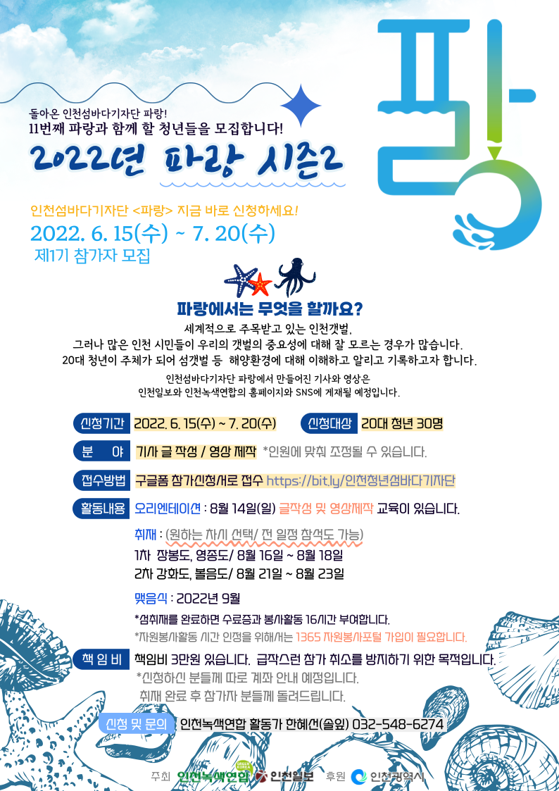 인천청년 섬바다기자단 ‘파랑’ 시즌2 제1기를 모집합니다!