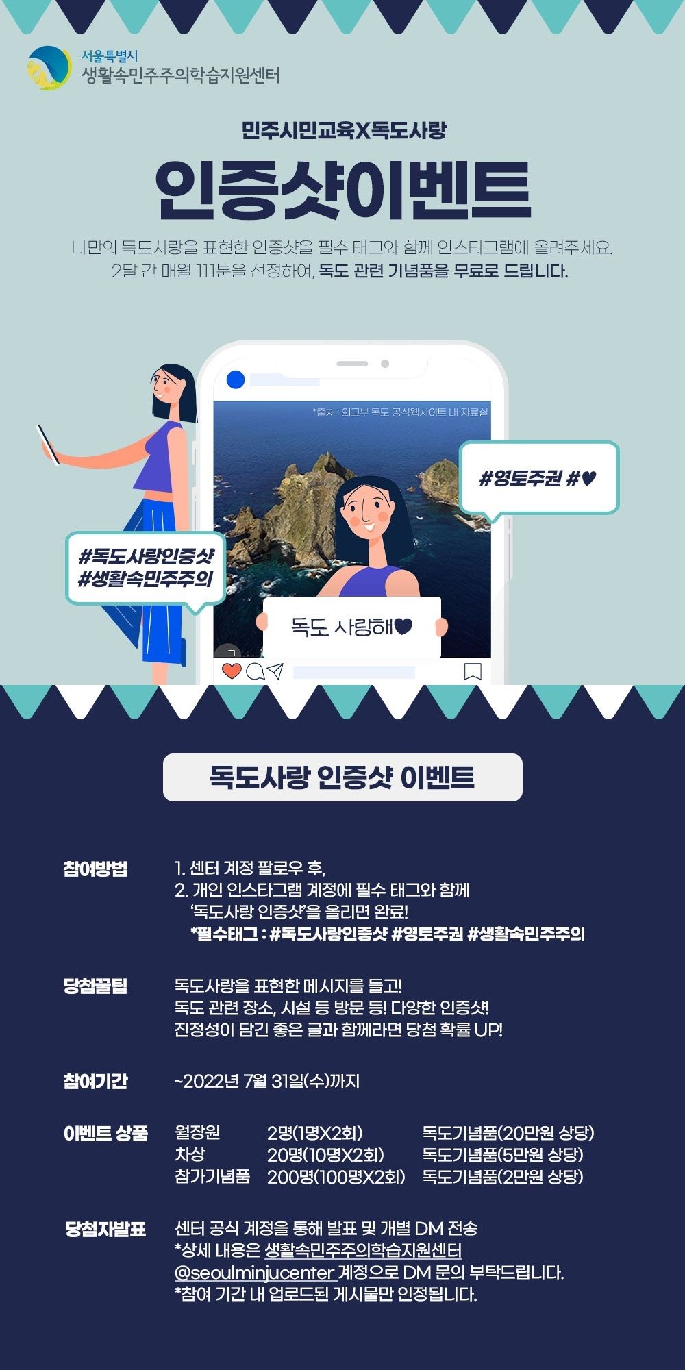 *필수 해시태그 : #독도사랑인증샷 #영토주권 #생활속민주주의