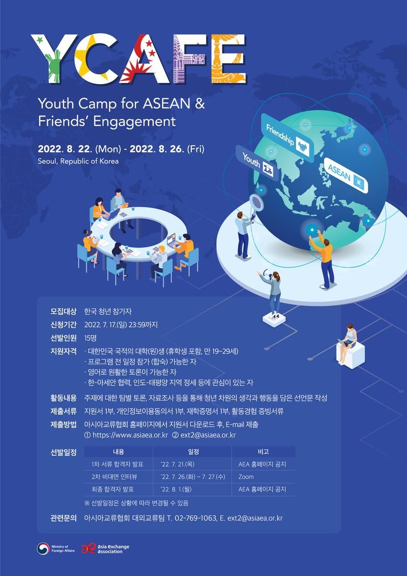 아시아교류협회는 대한민국 외교부와 함께 「Youth Camp for ASEAN and Friends' Engagement(YCAFE)」를 개최합니다.