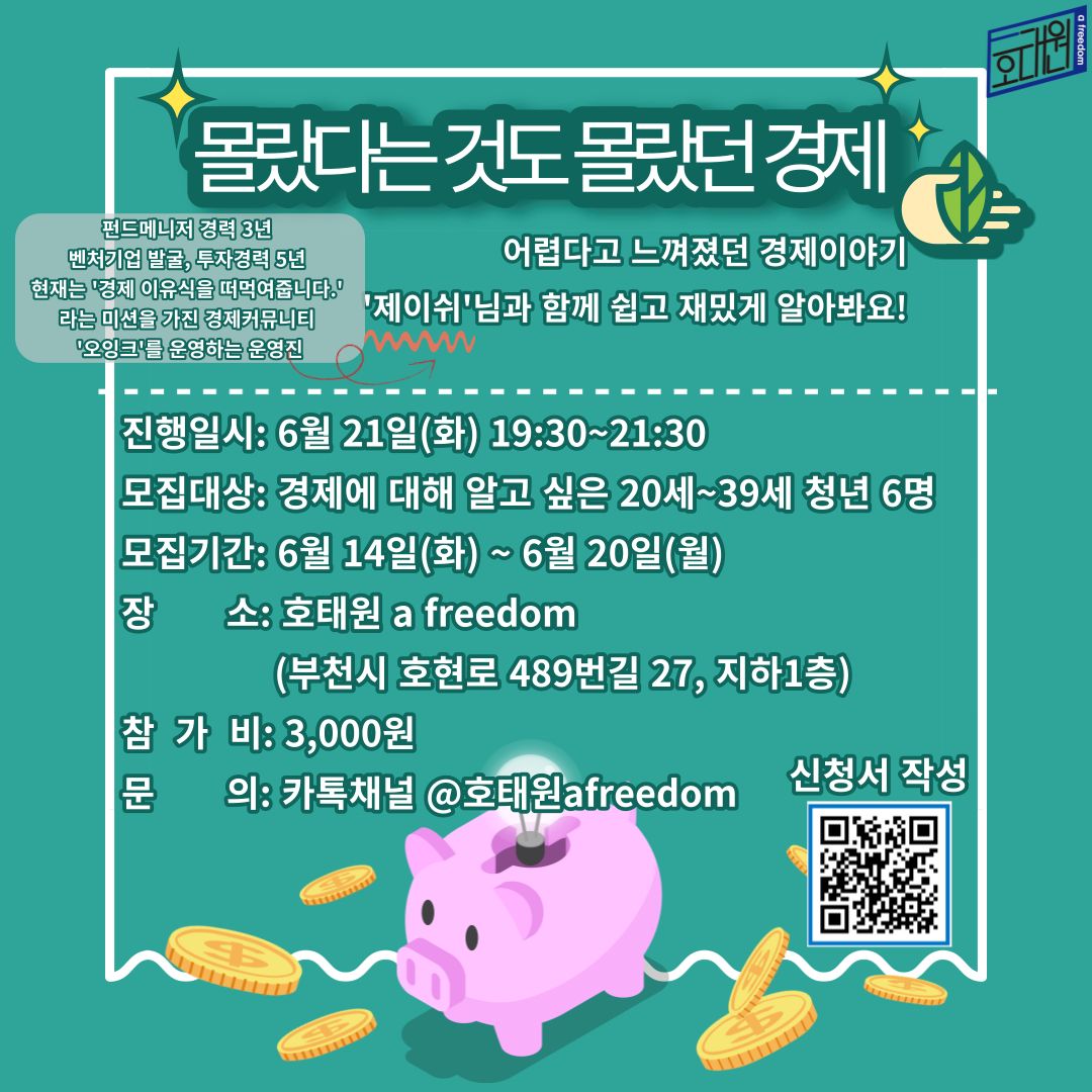 호태원에서 준비한 6월 프로그램, "몰랐다는 것도 몰랐던 경제"가 진행됩니다😎
