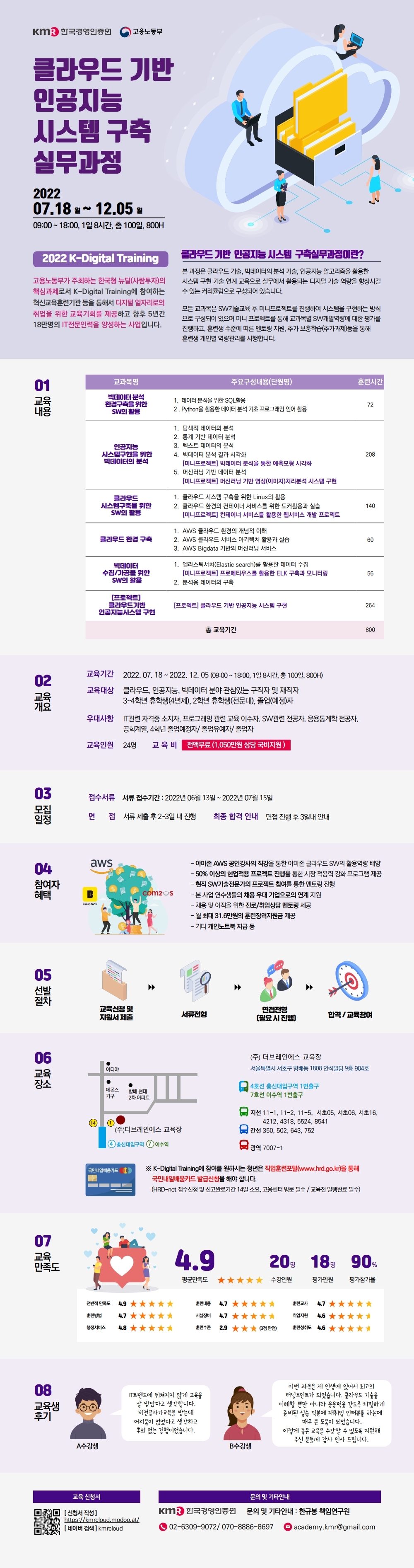 3. 교육기간 : 2022년 07월 18일(월) ~ 2022년 12월 05일(월) / 100일 800시간 / 09~18시, 1일 8시간