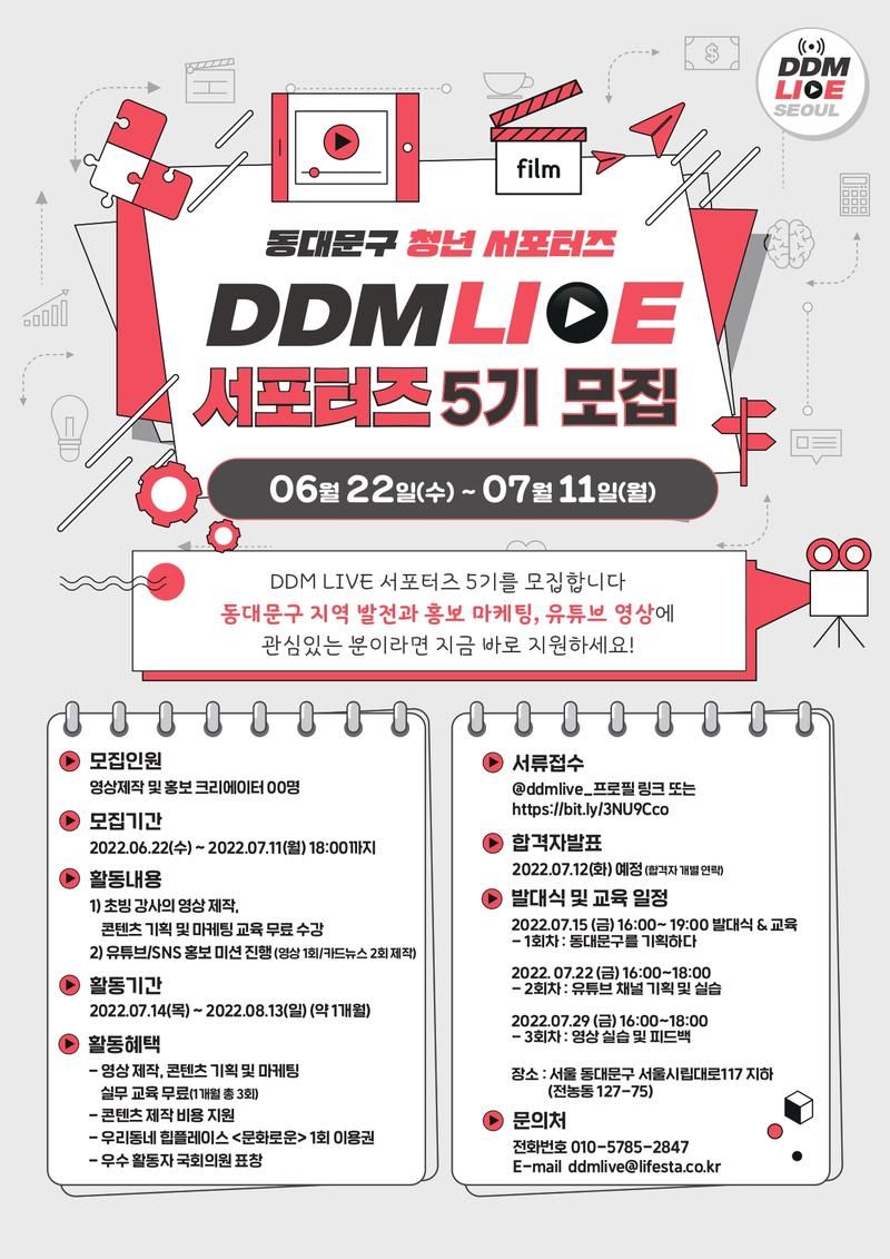 서울시 동대문구 청년 크리에이터 DDM LIVE 서포터즈 5기를 모집합니다 :)