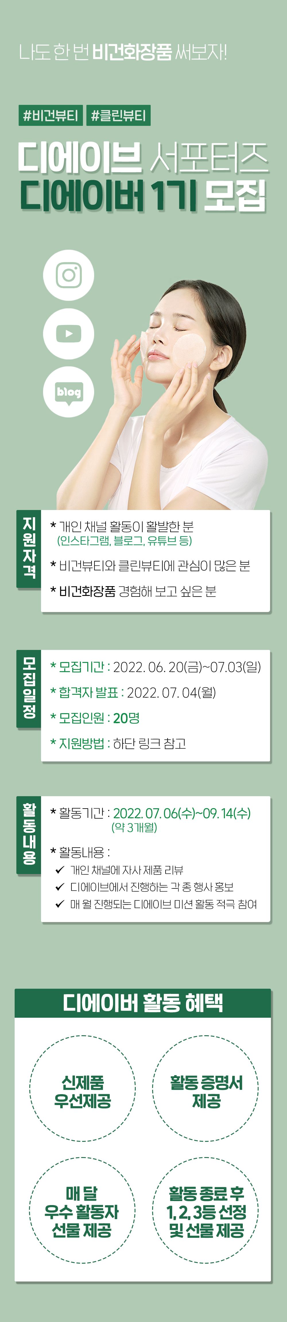 비건 스킨케어 브랜드 디에이브 서포터즈 디에이버 1기 모집
