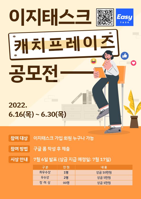 ※ 이지태스크 홈페이지와 SNS 채널을 참고해 이지태스크의 이미지를 잘 표현할수록 당첨확률 UP!