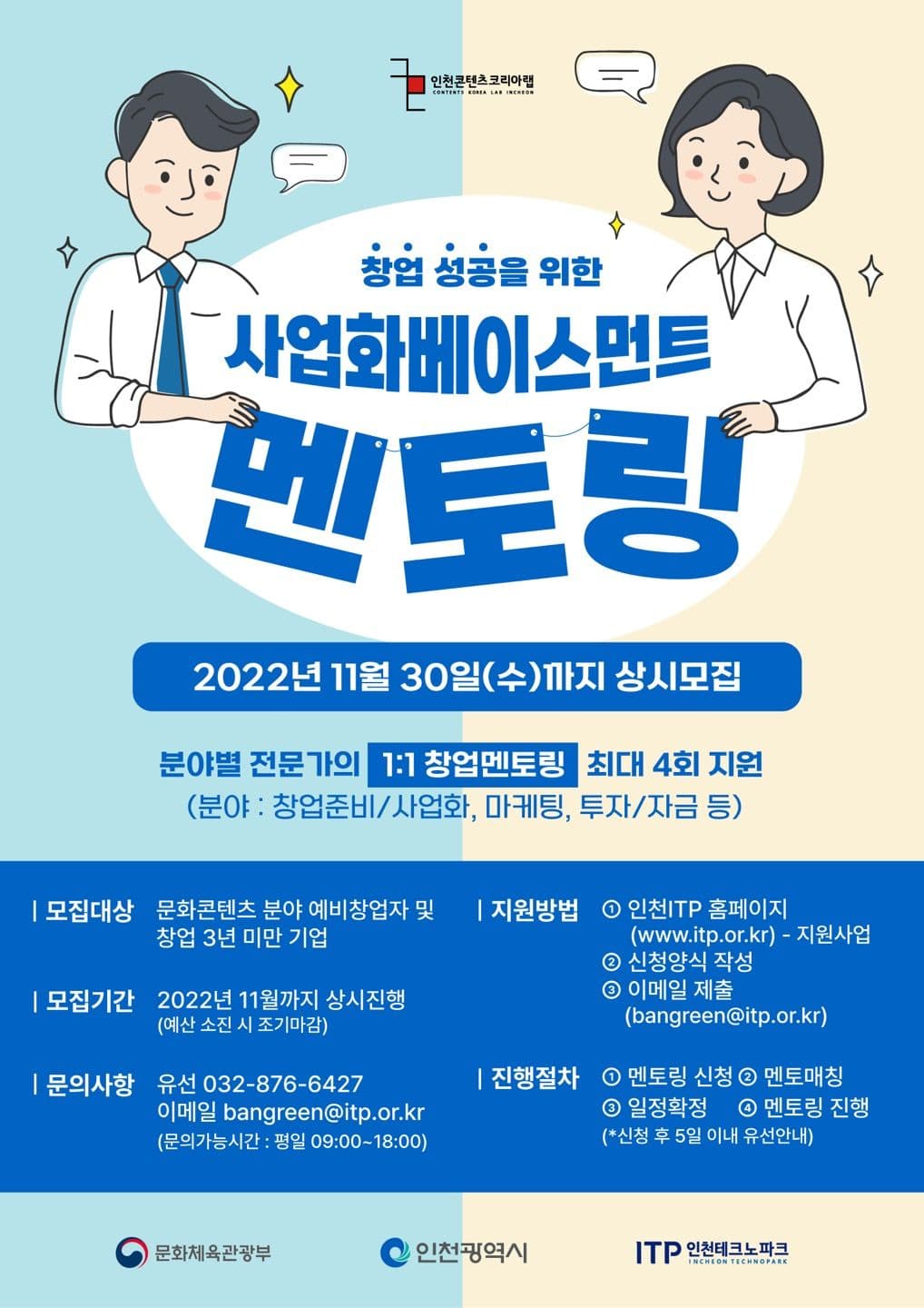○ 사업문의 : 인천콘텐츠코리아랩 담당자(032-876-6427 / bangreen@itp.or.kr)