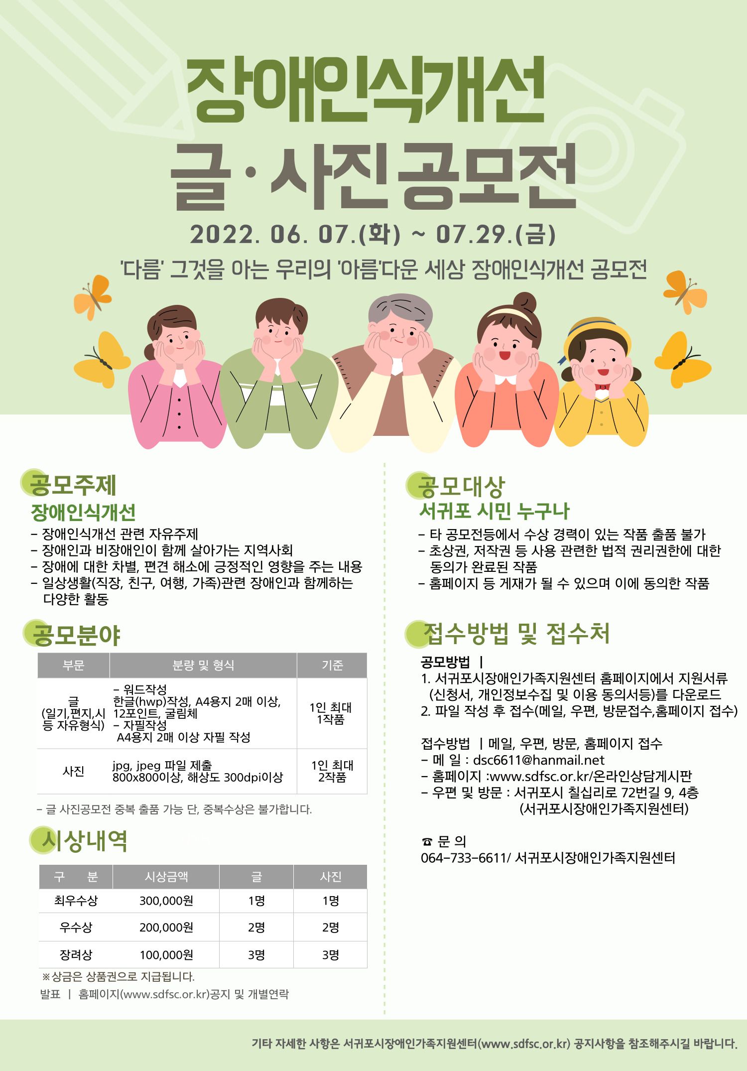 서귀포시장애인가족지원센터에서 장애인식개선 글·사진 공모전을 진행합니다. 많은 관심과 참여 부탁드립니다.