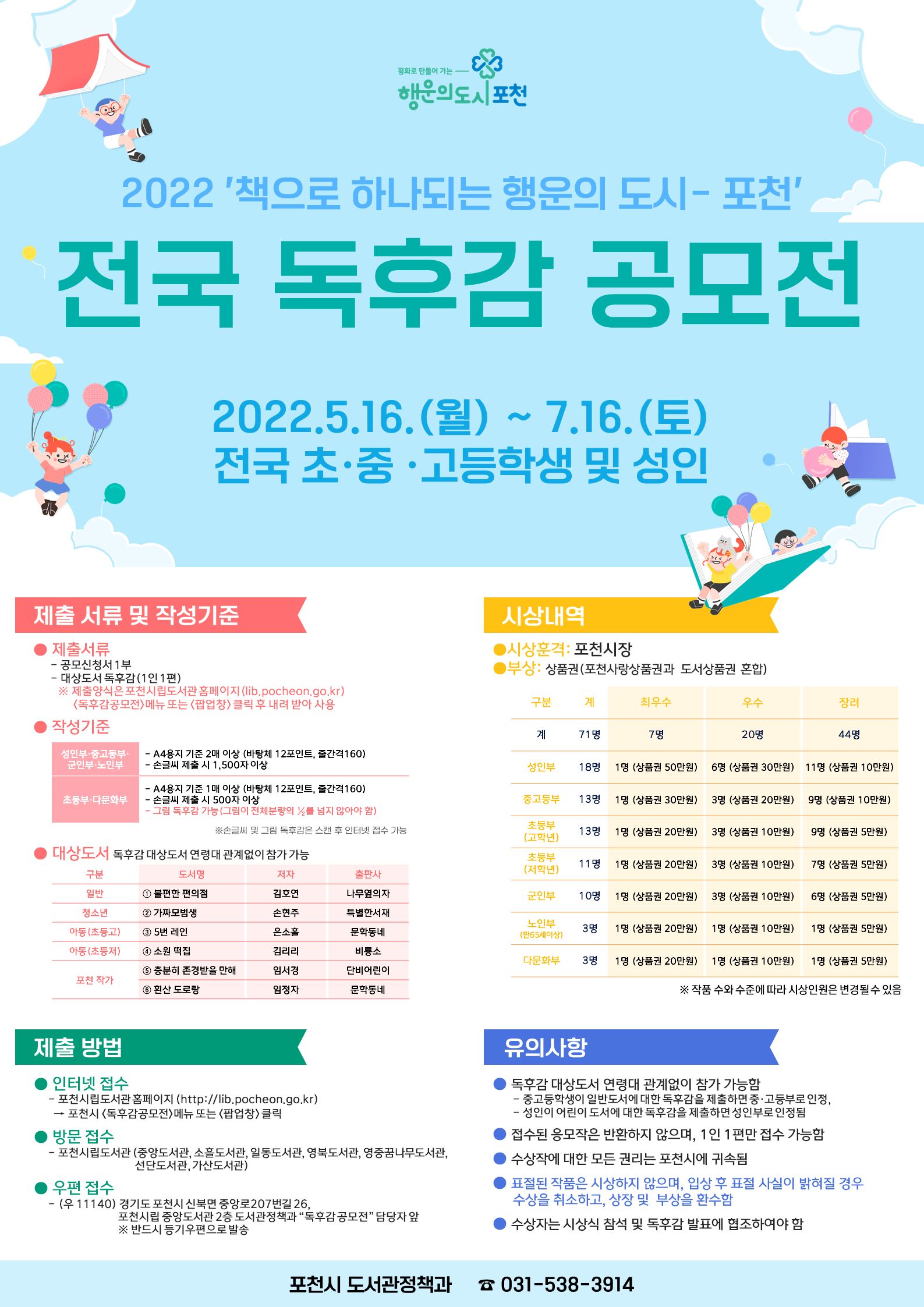 - 포천 전국 독후감 공모전에 많은 참여 바랍니다.