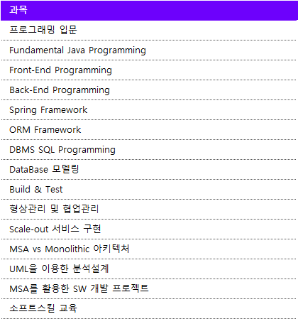 - 교육 기간 : 7월 25일(월) ~ 12월 28일(수)