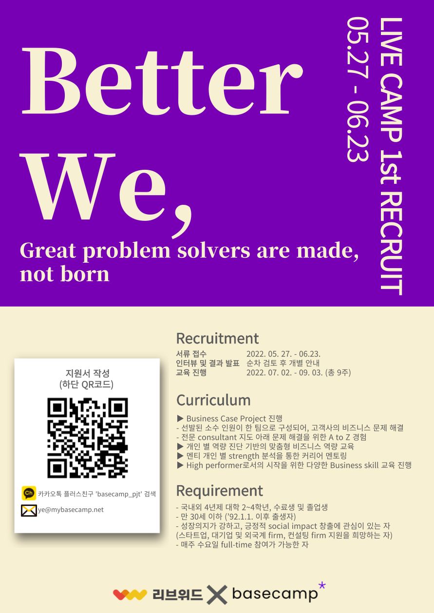 [리브위드x basecamp] 문제해결형 인재 육성 프로그램 ‘Better We Project’ 1기 모집