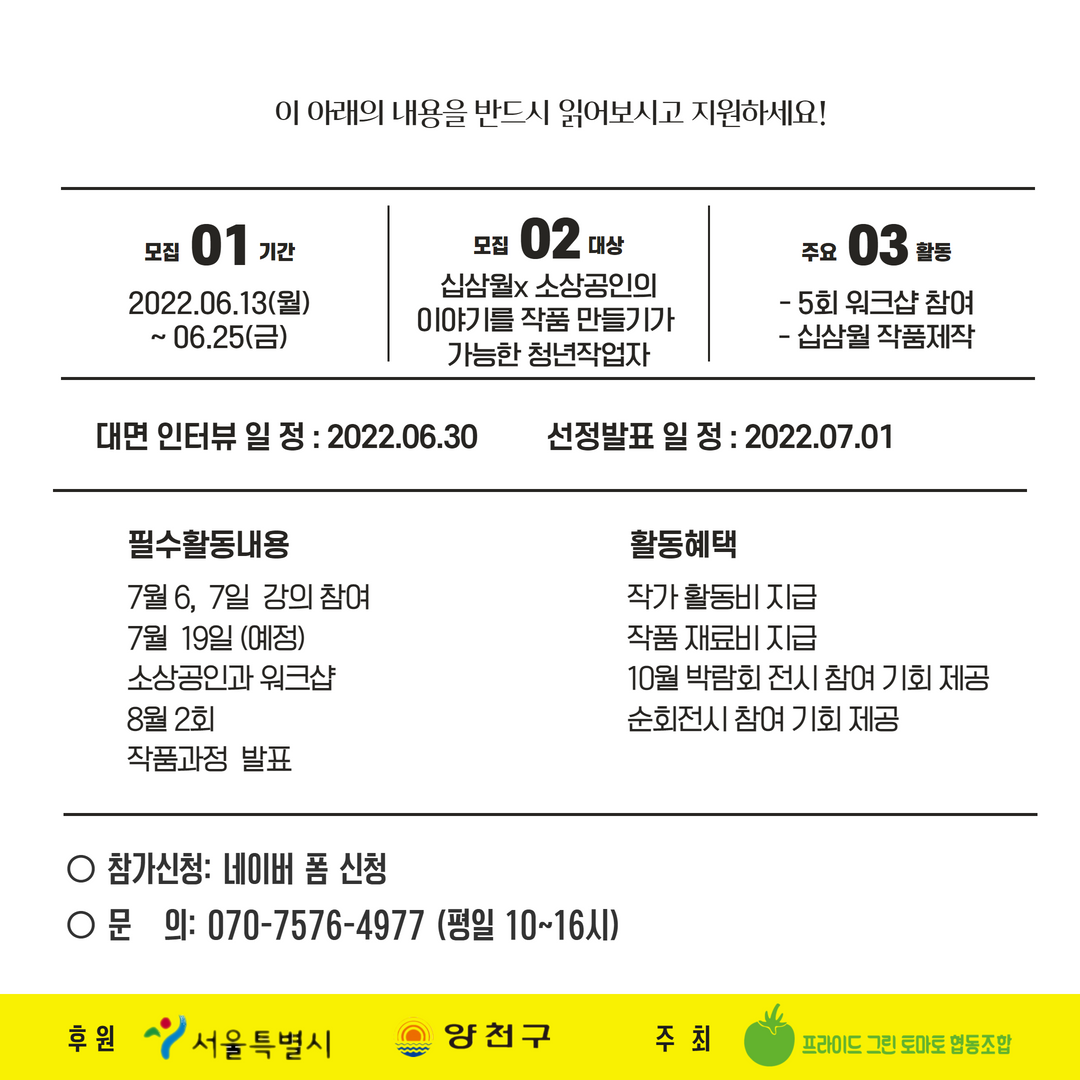 ✅모집대상 : 십삼월X소상공인의 이야기를 작품으로 만들기가 가능한 청년작업자(5명내외)