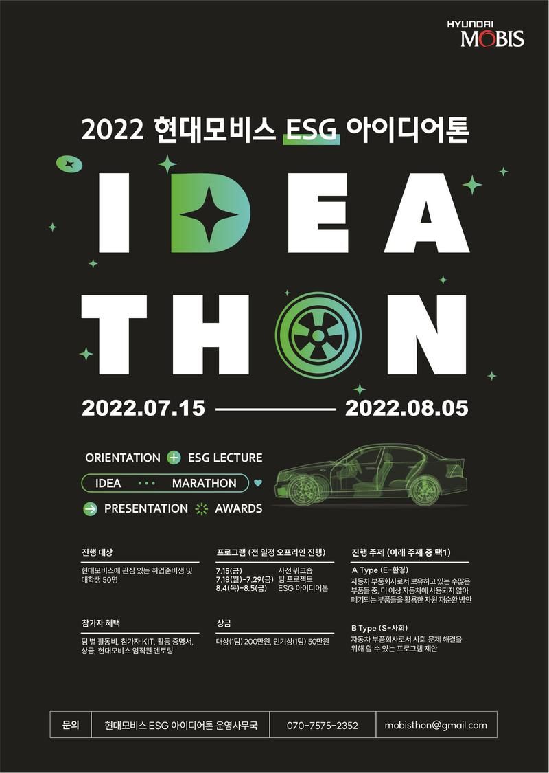 [현대모비스] 임직원 멘토링 받고, 아이디어 해커톤까지! | 2022 현대모비스 ESG 아이디어톤 참가자 모집 (~6/26)