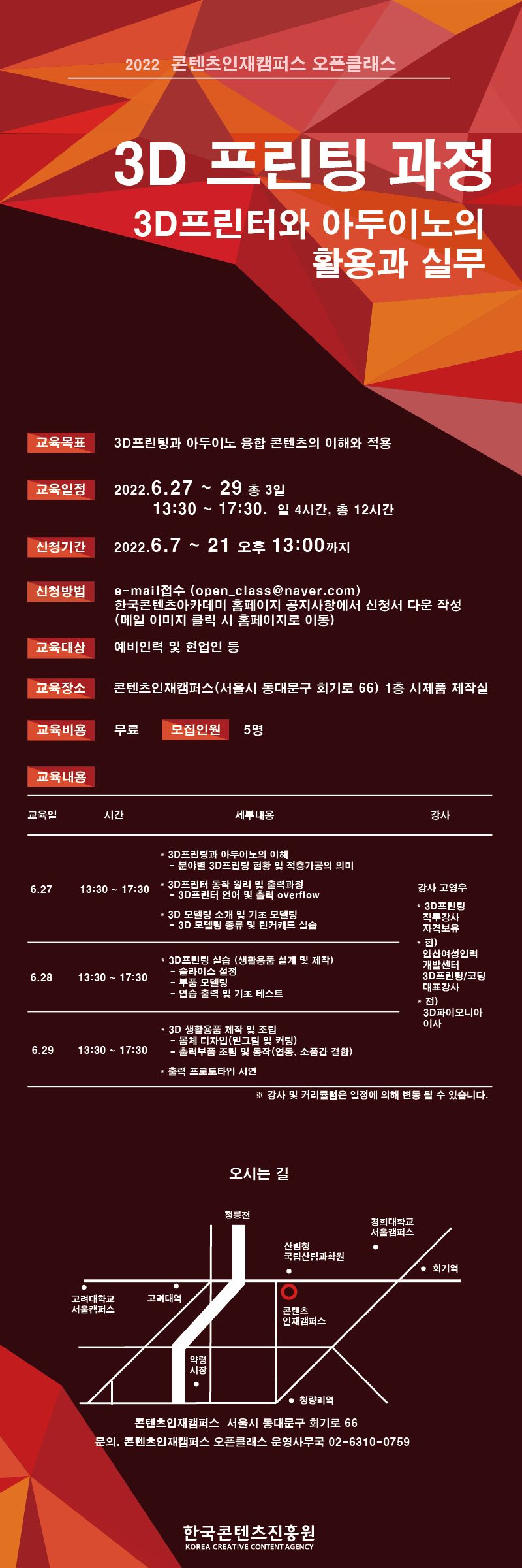 2022 콘텐츠인재캠퍼스 3D프린팅 무료 교육